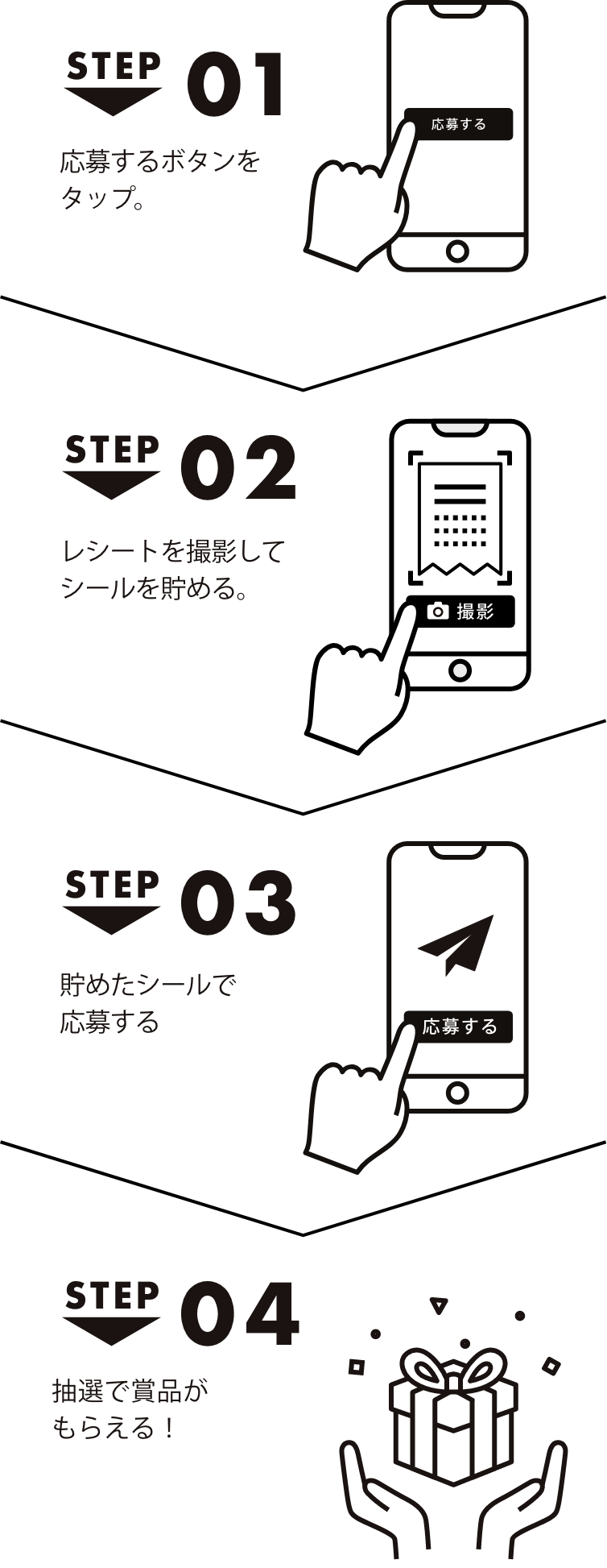 ※レシートまたはEC購入明細(納品書および領収書)をアップロードするごとに、購入本数に応じた応募シールが貯まります。
